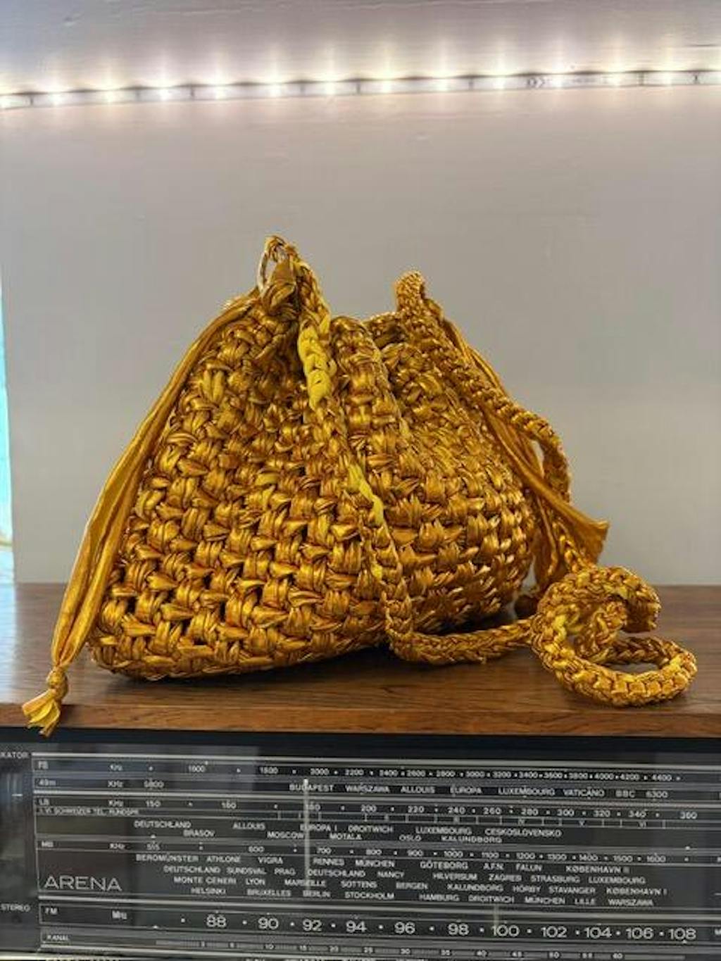 Caterina Bigazzi Acquistata in vari colori, questa fettuccia ha sfumature cangianti e brillanti, è scorrevole ed elastica, si lavora benissimo. Perfetta per borse anche eleganti.